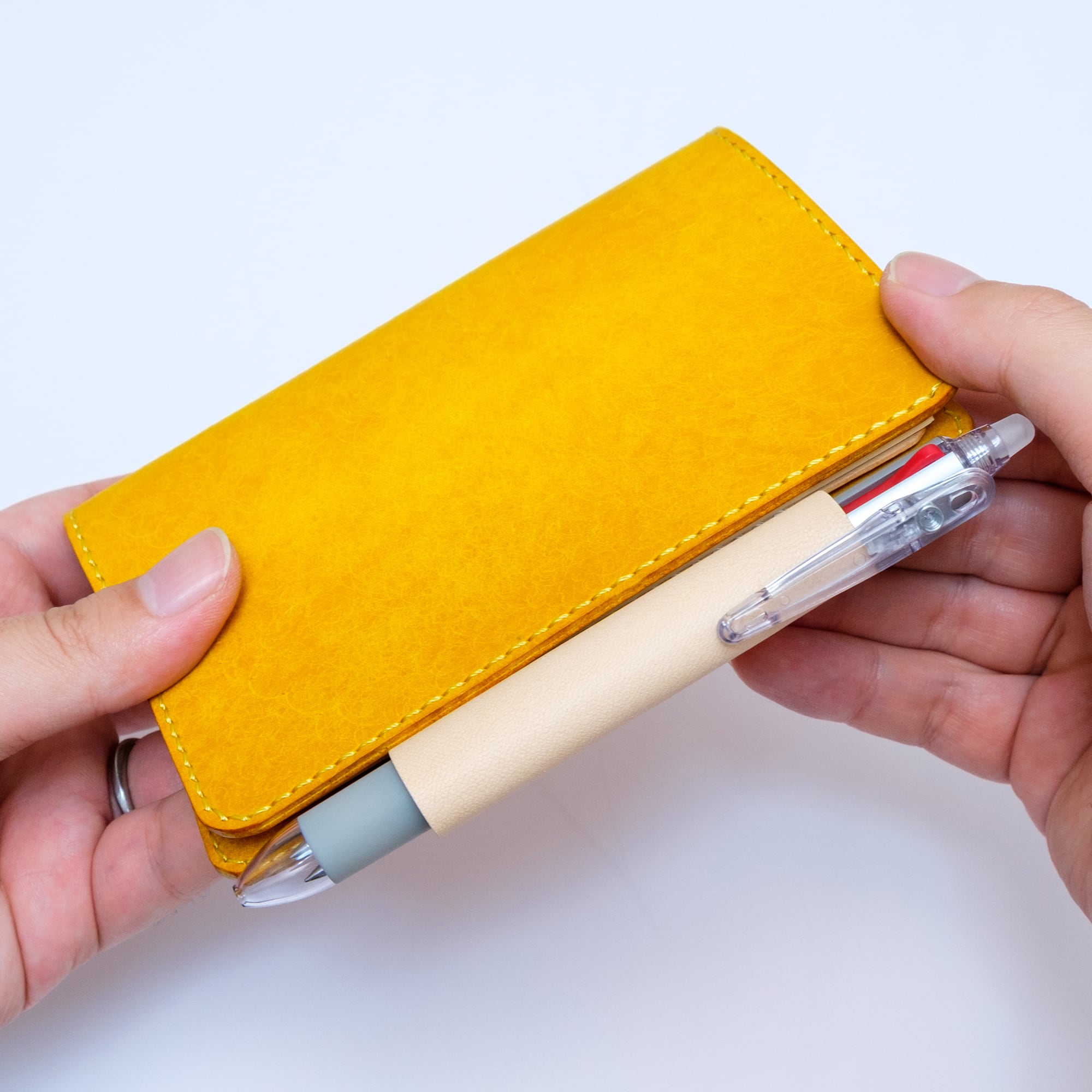 書きやすさと革の表情をどちらも大切にしたくて、今回は裏地を加えて仕立てました。