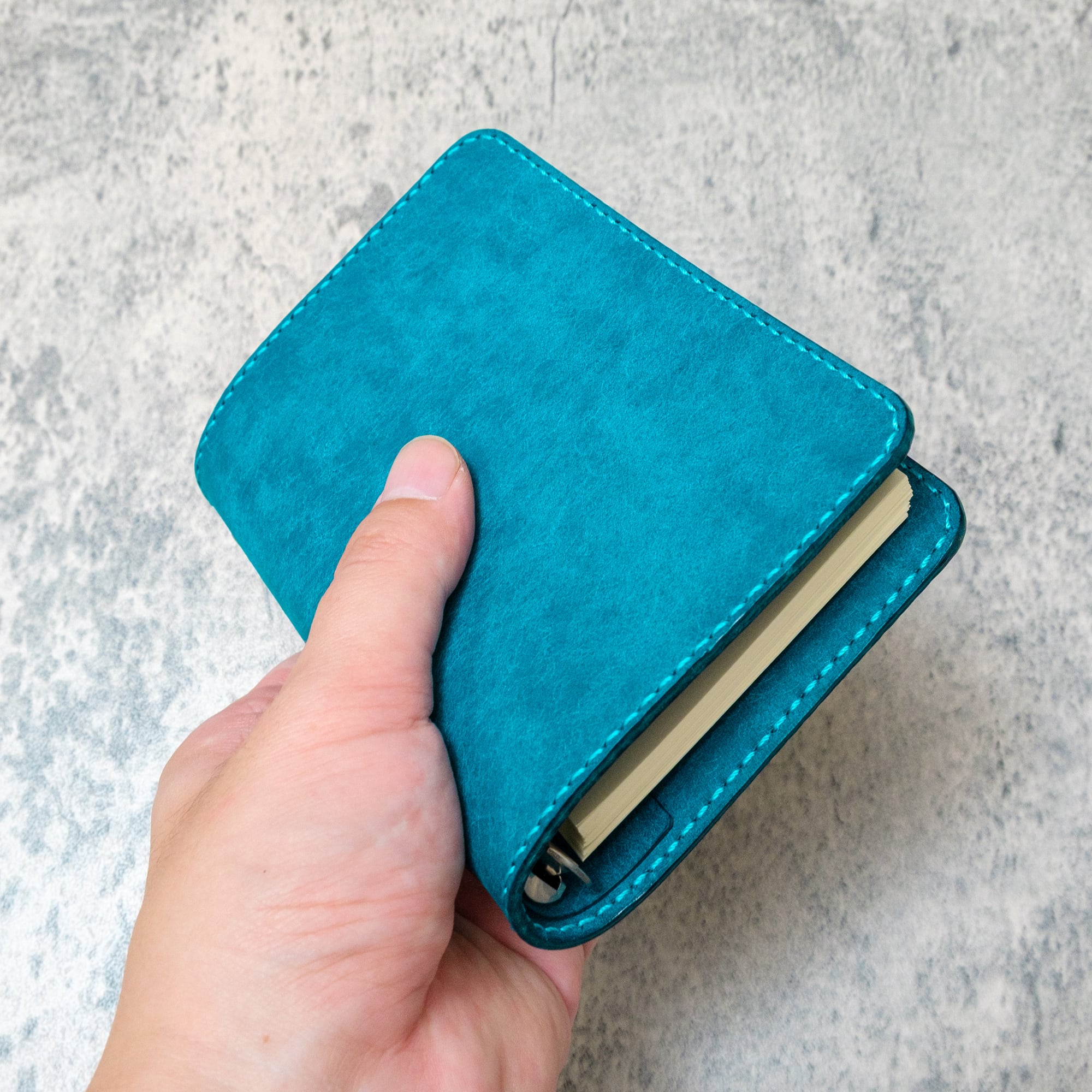 一枚革カバーでは得られない、手のひらに吸いつくような厚みと安定感。